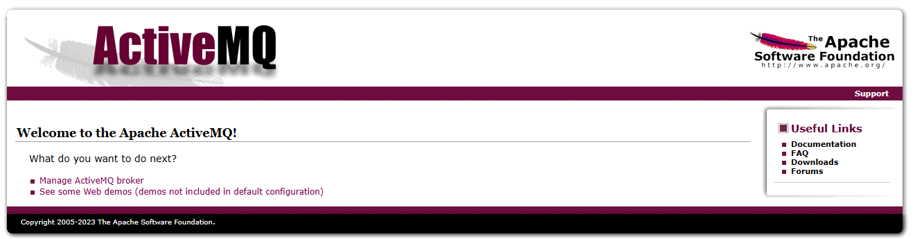 本地浏览器访问登录 URL,输入账号验证成功后进入 ActiveMQ Welcome 页面