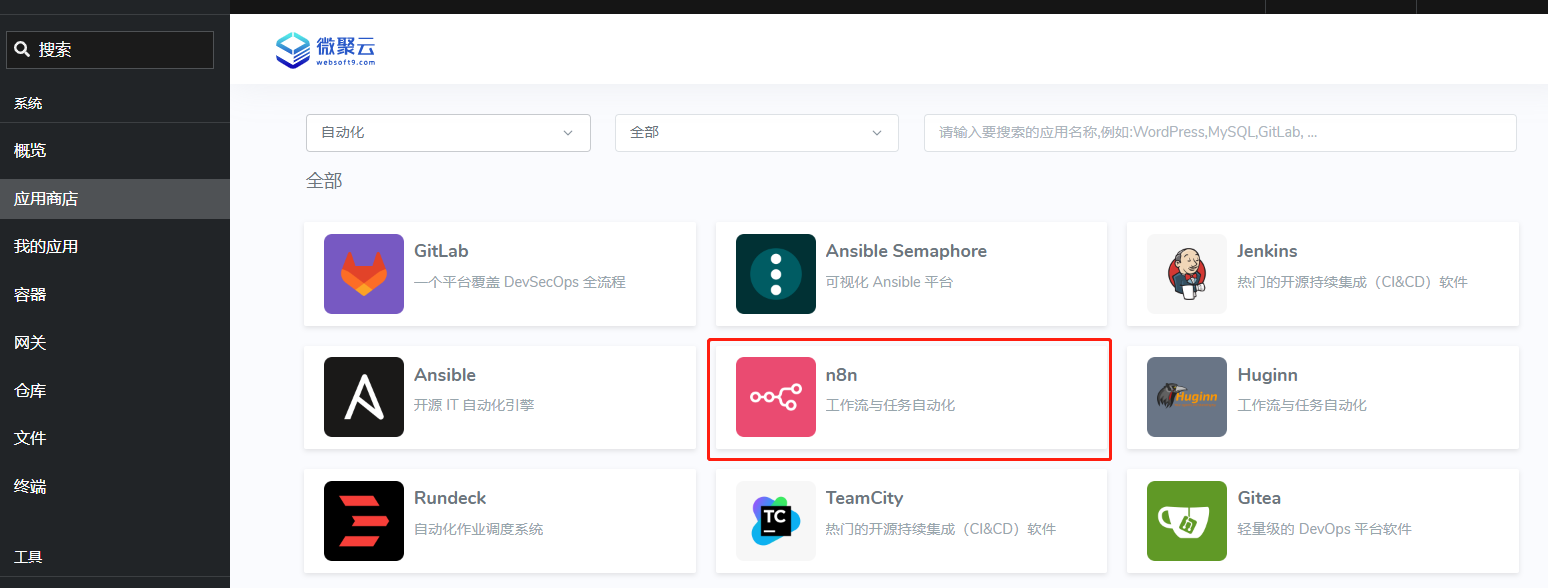 在 Websoft9 托管平台上,推荐使用 n8n 来构建自动化的工作流程。n8n 提供了一种基于图形界面的流程设计方法,可以轻松创建和管理多种自动化任务,包括但不限于: