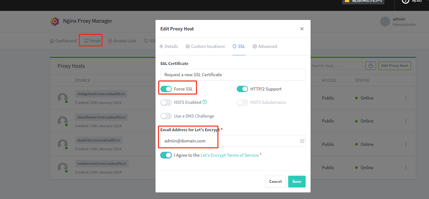 Click Save, it will starting SSL automaticlly
